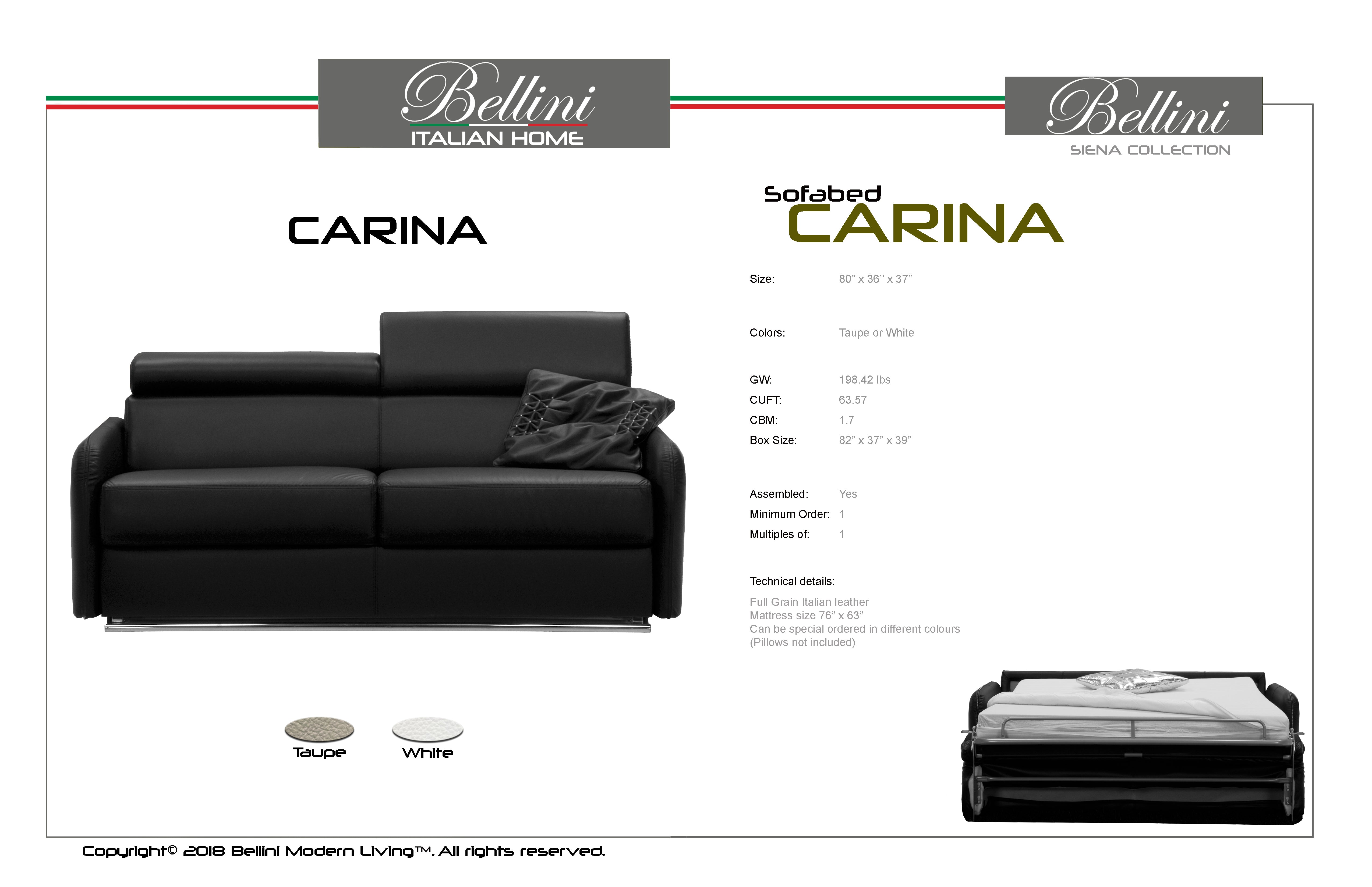The Carina Sofa Bed is available in Taupe, and White. Transform this piece from a sofa to a bed in a matter of seconds with its state of the art mechanism. Made in Italy.