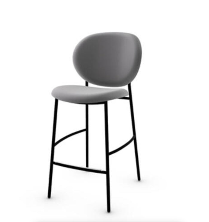 Stool with a metal frame which supports the rounded enveloping chair seat and backrest, emanating an airy elegant vibe.
