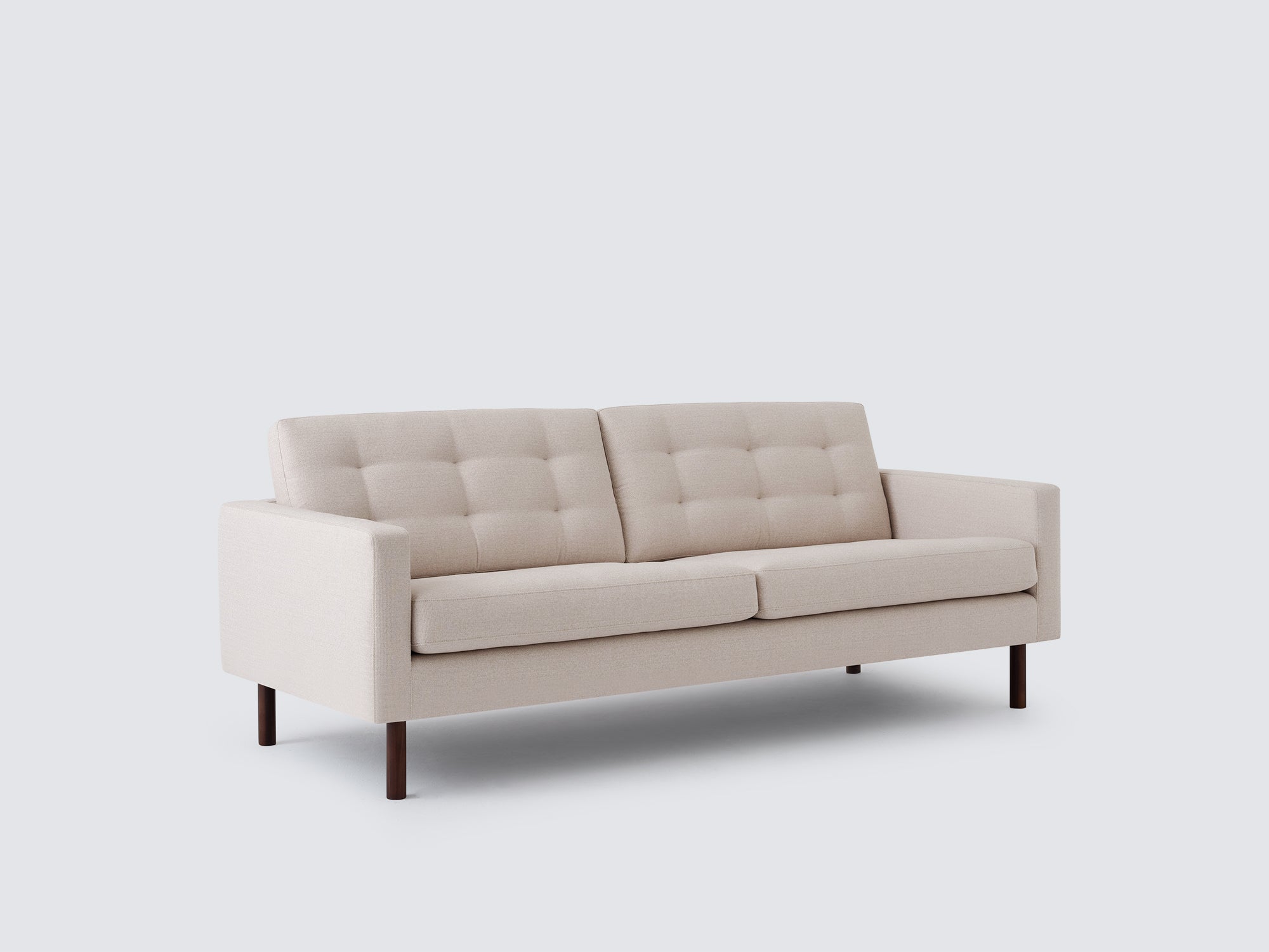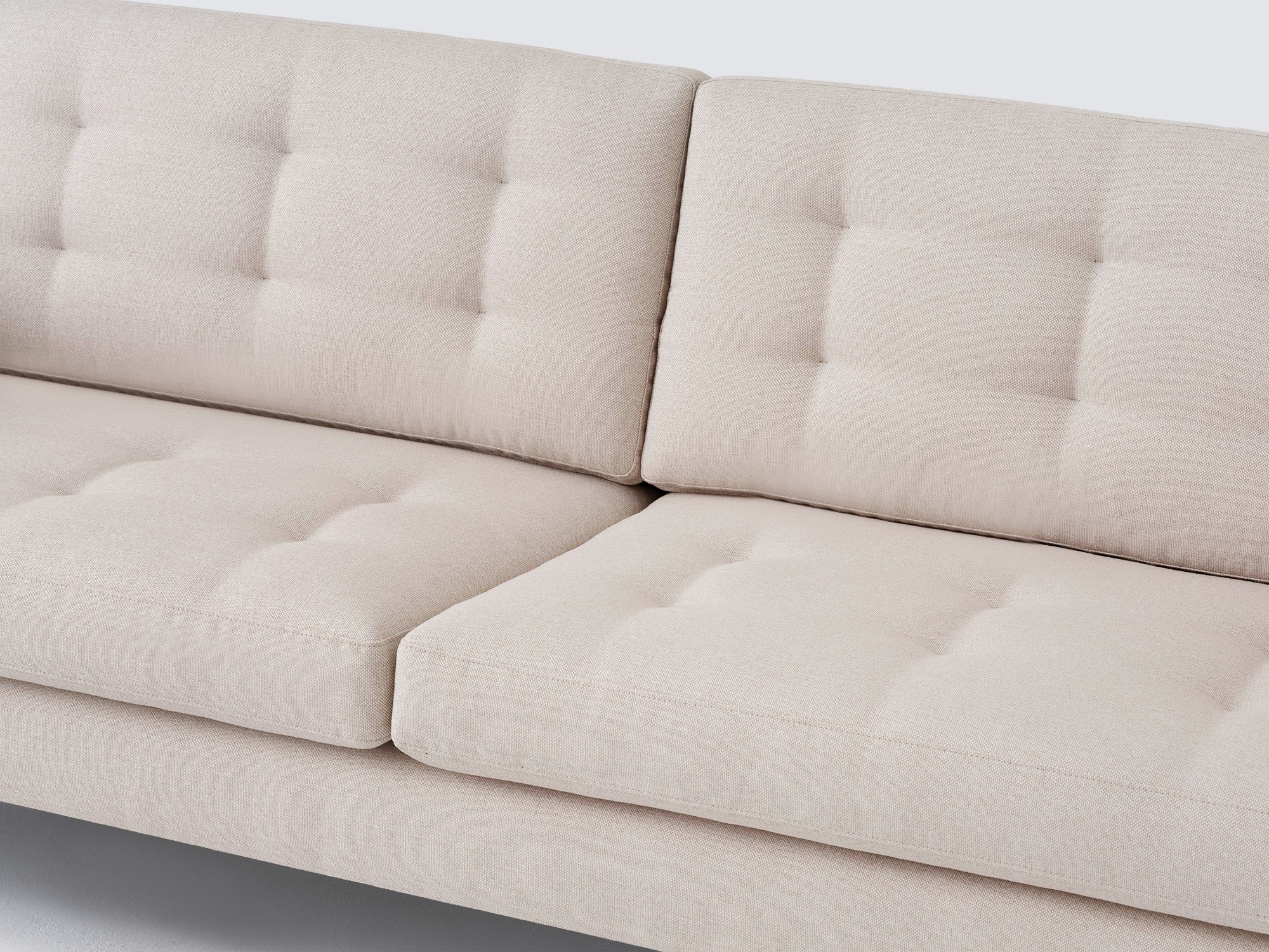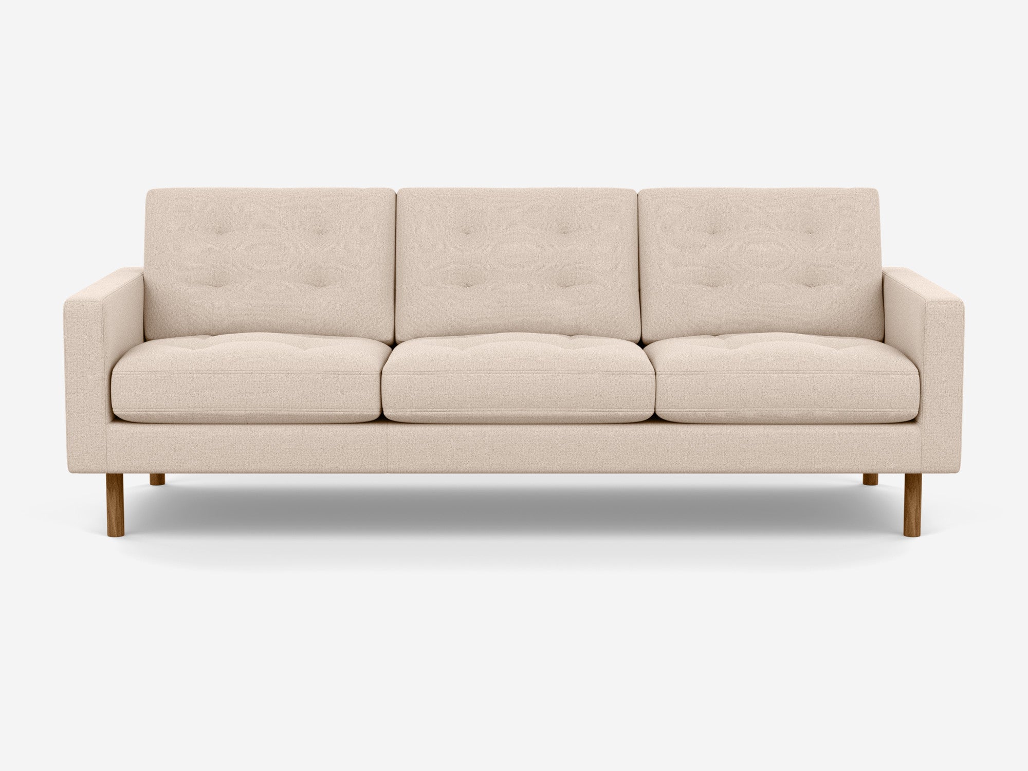 The Joan Sofa is playful in shape, yet contemporary with its tailored blind-tufted seating and back. Featuring high-density, high-resiliency foam cushions, and sophisticated leg options, the Joan is a great option for first-time buyers without compromising quality and design. The Panama Natural Fabric gives the piece a neutral and relaxed look that will complement any home décor.