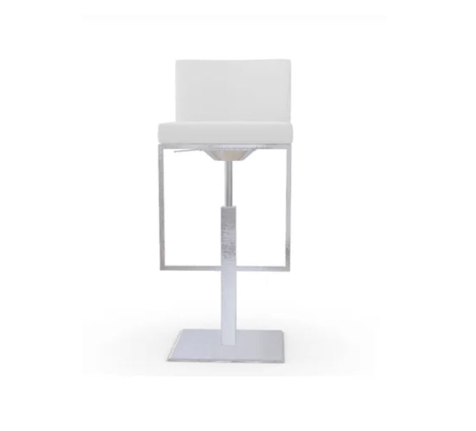 Sophisticated materials and design ideas meet in a stool with stark but elegant lines. The conic shaped backrest and the wide seat give this stool model great comfort and ergonomics. The frame, made of square tubular steel, is set flush with the backrest, while the contoured seat is upholstered and covered. The EVEN stool swivels and can be adjusted for height with gas-lift mechanism. Square support and pedestal base.