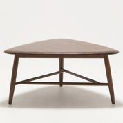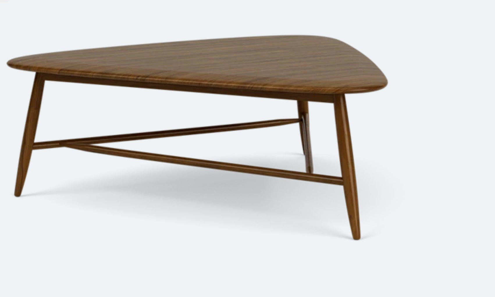 Constructed from solid acacia wood and designed with thin lines, rounded edges, and mid-century-inspired styling, the Kacia Tri Coffee Table - 31"(Small) Or 43" (Large) is a tasteful and modest piece that stands out in any space. This durable wood - native to Vietnam - features a warm chestnut brown finish with a complex grain, and is also available in black. This item is available in three sizes, including a new rectangular shape, so you can mix and match it with the Kacia end table.