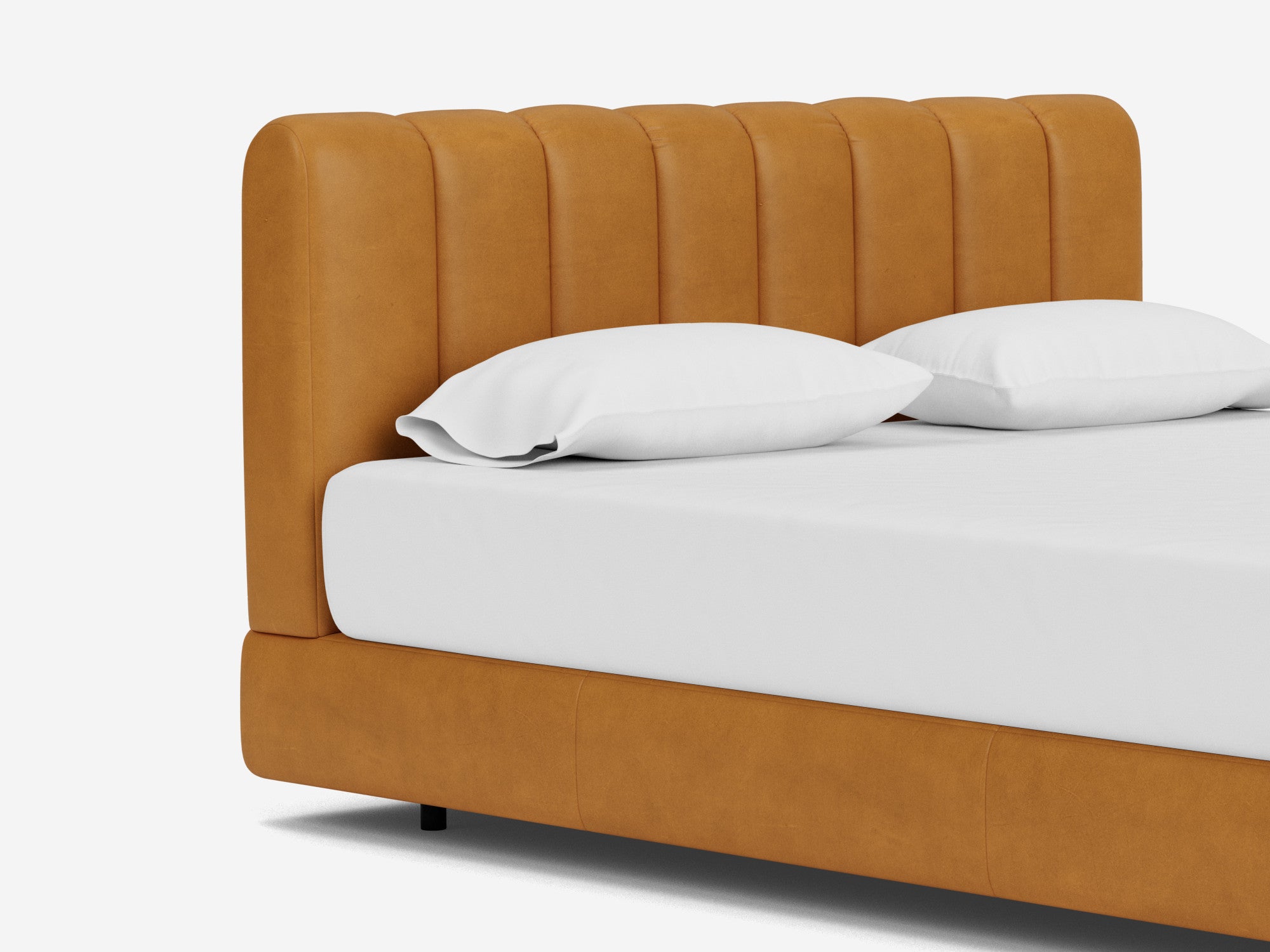 With customization and comfort at its core, the Stage bed allows you to build a design that best suits your space. Choose from 3 headboard faces, Moon, Channel Moon, and Track in low or high versions. Plus, upholster it to your liking in a variety of fabrics or leathers. Each headboard is padded, and the platform is supported by wood slats, allowing your mattress to float along the frame.